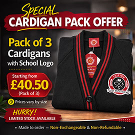 All garments come with the school logo unless otherwise stated as "Plain"
