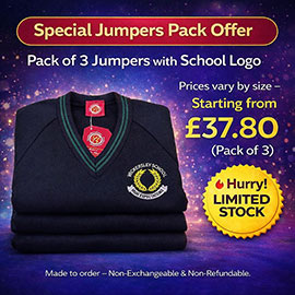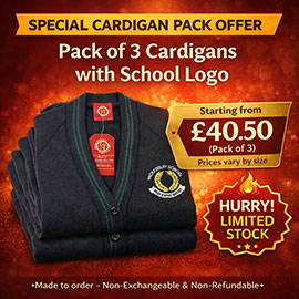 All garments come with the school logo unless otherwise stated as "Plain"